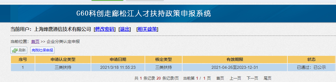 【喜报】烽唐通信被认定为上海市松江区G60科创走廊三类重点扶持企业!